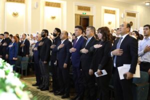 Праздничную атмосферу создали торжественные музыкальные выступления оркестра O‘zbekiston Respublikasi Mudofaa vazirligi, а также различные номера и сценические постановки студентов.