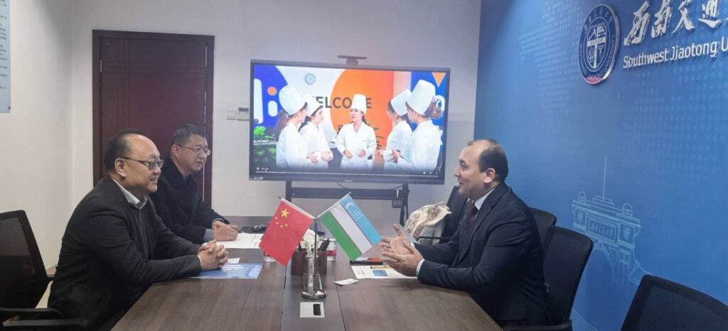 Impuls Tibbiyot Instituti Chirchiq filiali rektori A. Xamdamov Xitoy Xalq Respublikasiga tashrifi davomida Southwest Jiaotong Universitetining Xalqaro hamkorlik va almashinuv dasturlari bo‘yicha direktori, Xalqaro ta’lim fakulteti dekani professor Lei Ma hamda Xalqaro hamkorliklar bo‘yicha direktor o‘rinbosari Dr. Xu Junhua bilan uchrashuv o’tkazdi.